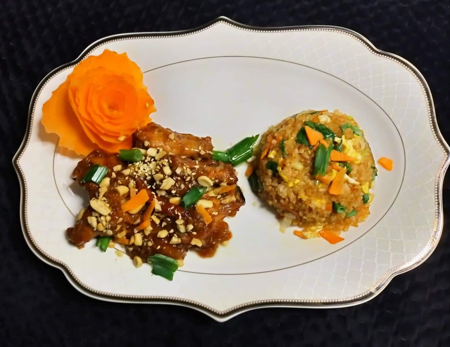 يتم تتبيل الأجنحة بالبرتقال والصويا صوص الفاتح والغامق وتركها في الثلاجه لمدة 30 دقيقة