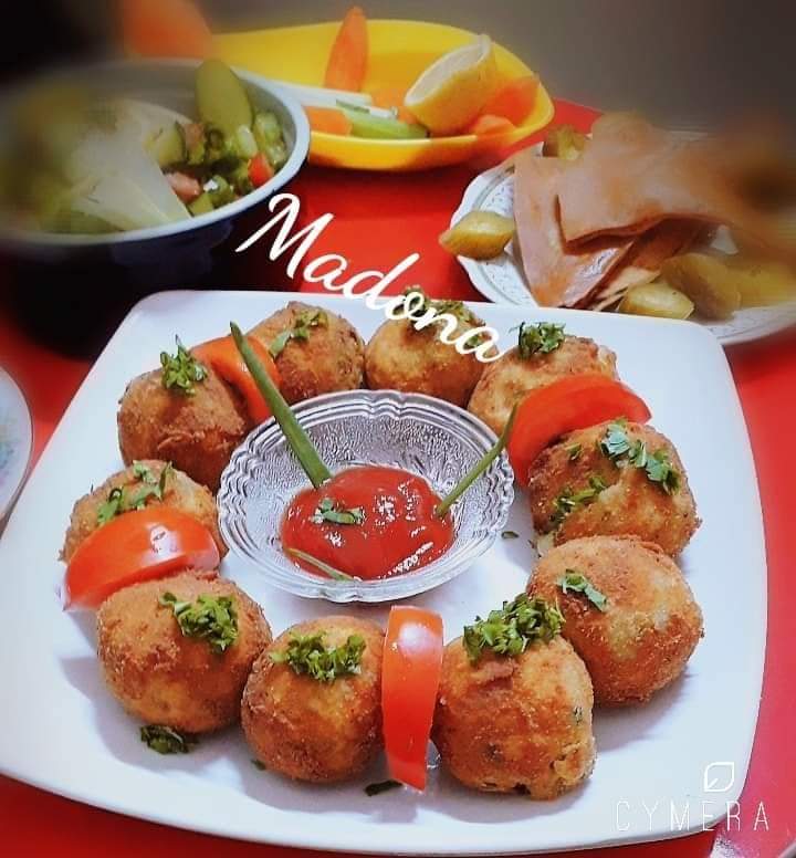 8- تقدم كرات البطاطس مع الكاتشب والسلطات .