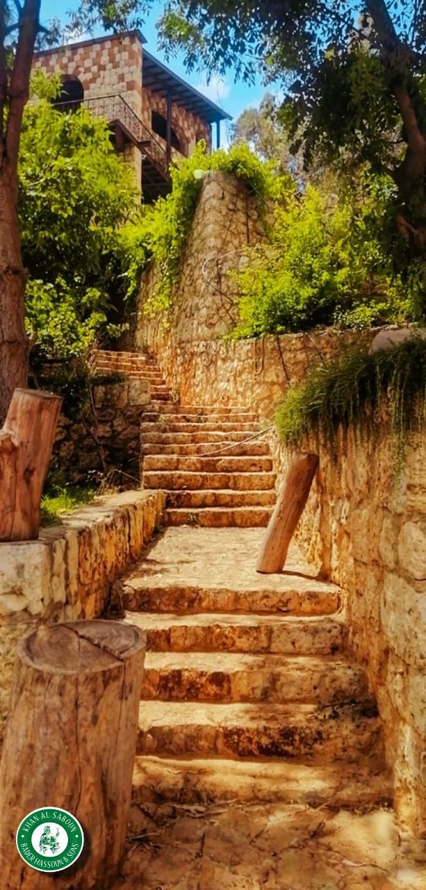 تخترق هذه الأبنية، ممرات حجر، ومساكب للنباتات التي يستخرج منها العطور والزيوت، كغار الجبل، والخزامى، والياسمين، والبابونج وعطريات أخرى، وزوّدها بتشكيلات مجالس، وأشباه ينابيع من المياه.
