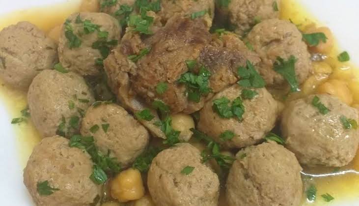 يقدم هذا الطبق في صحن ،حيث توضع كريات اللحم في الوسط و يزين الطبق بالبقدونس و اللوز الحمص
